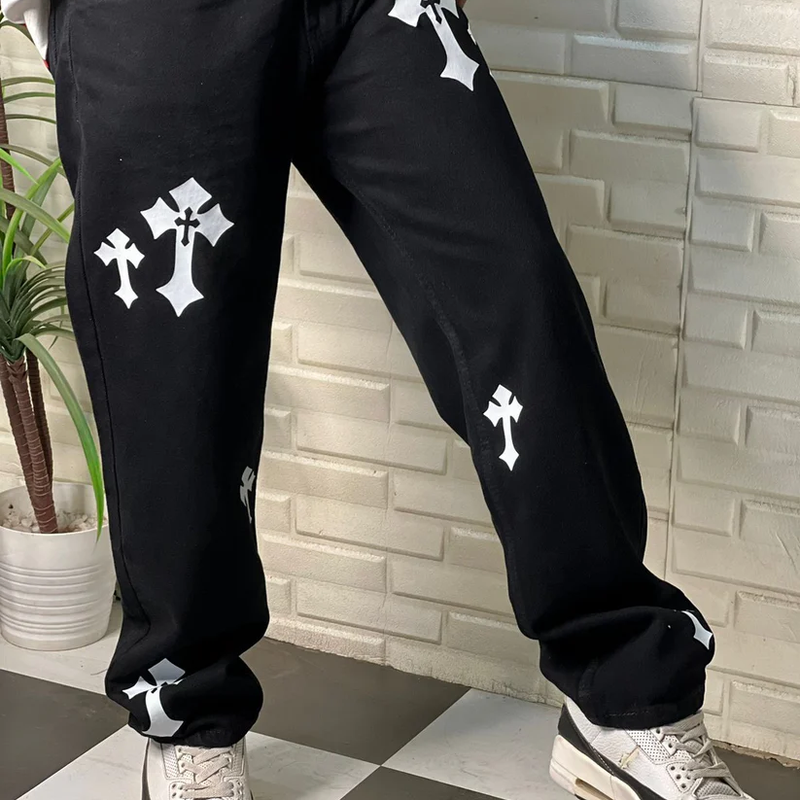 Aesthetic Z Black Straight Fit Baggy Jeans For Men